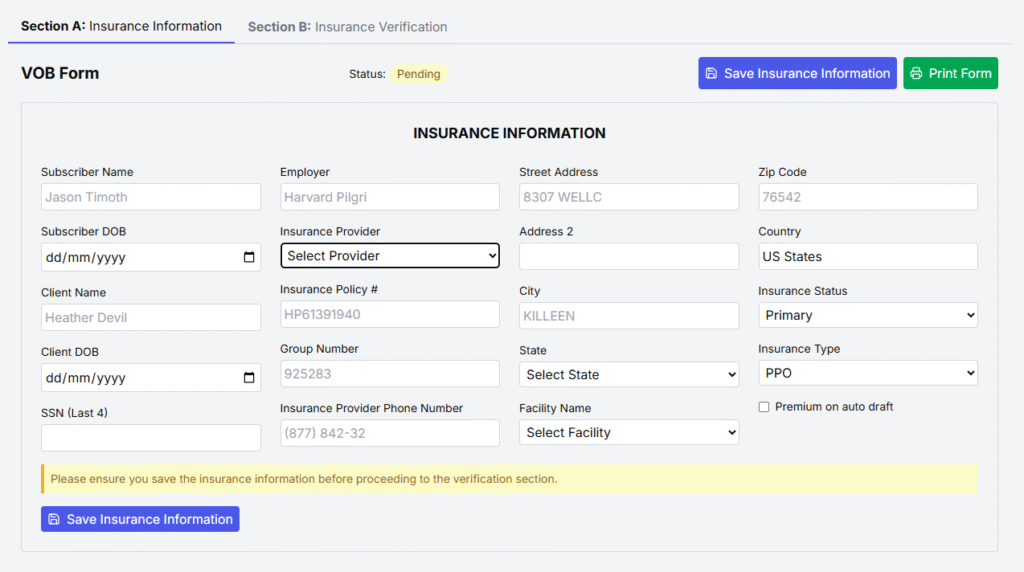 Our Verification of Benefits (VOB) tool is built to do more than just confirm coverage it empowers your entire revenue cycle management process.